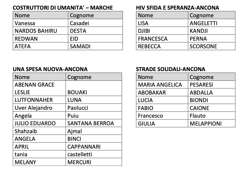 Il candidato è tenuto a presentarsi ad ANCONA presso la sede della Caritas diocesana di Ancona- Osimo in Via Podesti nr. 12 – 60122 Ancona e ad avere con sé: