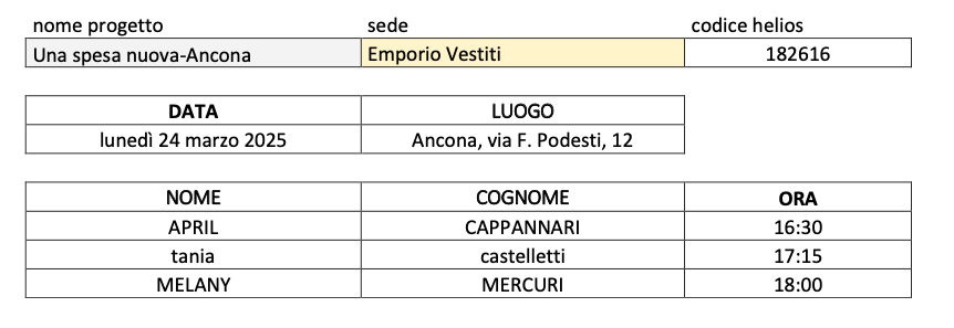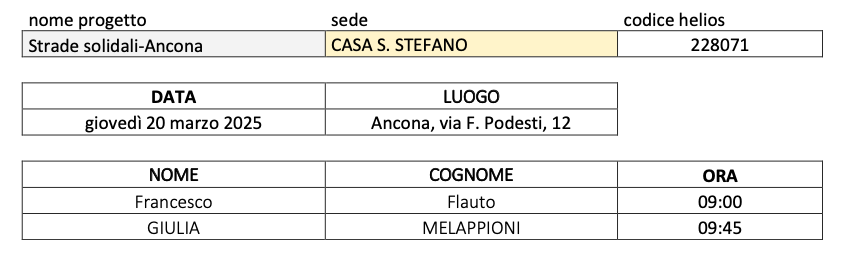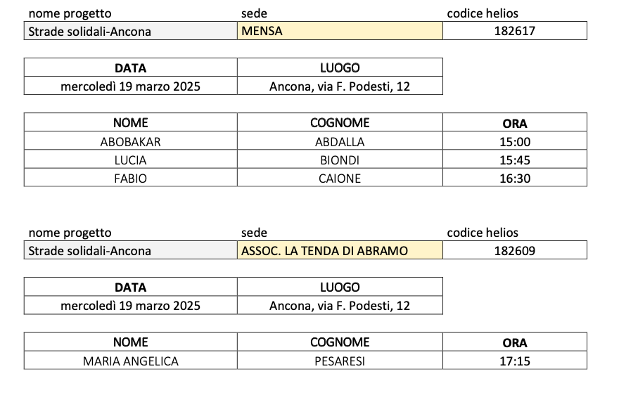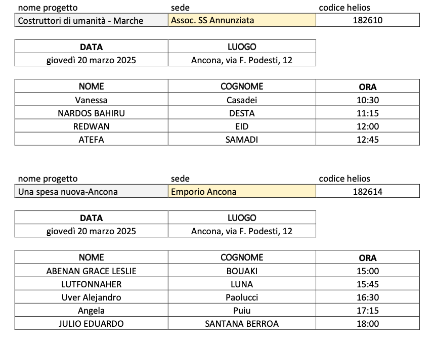 colloquio individuale il quale avverrà NEI GIORNI SUCCESSIVI, presso la sede della Caritas diocesana di Ancona-Osimo via Podesti nr. 12, nei giorni e negli orari e sotto riportati: