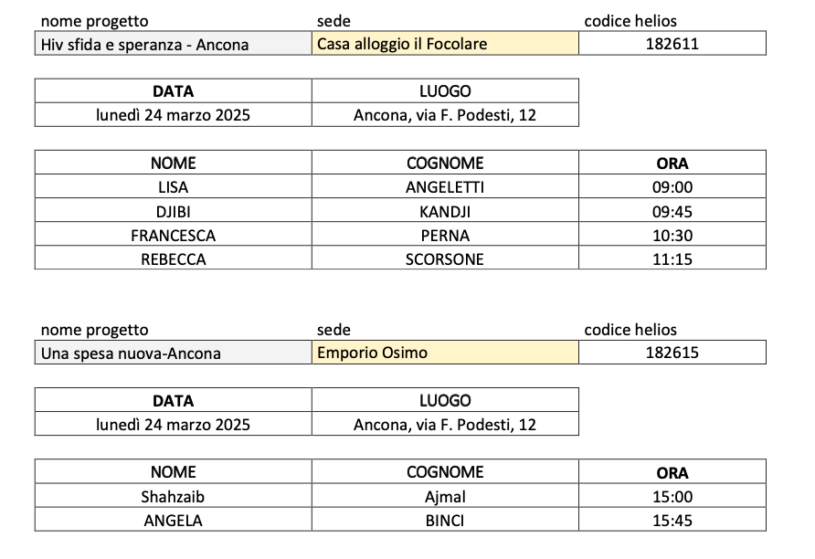 Convocazioni per le selezioni della CARITAS DIOCESANA DI ANCONA - OSIMO dei progetti:
